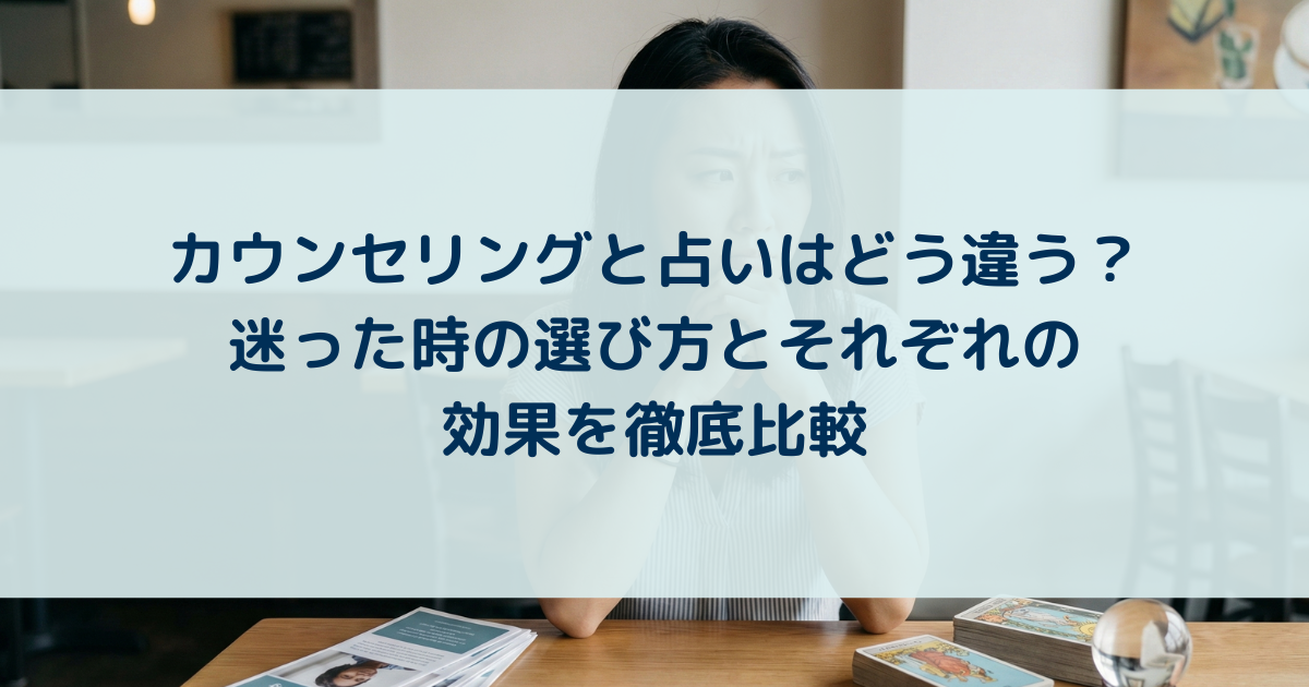 この記事では、カウンセリングと占いの違いを明確にし、それぞれのメリットや効果、そして今のあなたにはどちらが必要なのかを見極めるためのヒントを詳しく解説します。あなたの心が本当に求めている解決策を見つけるためのガイドとして、ぜひお役立てください。